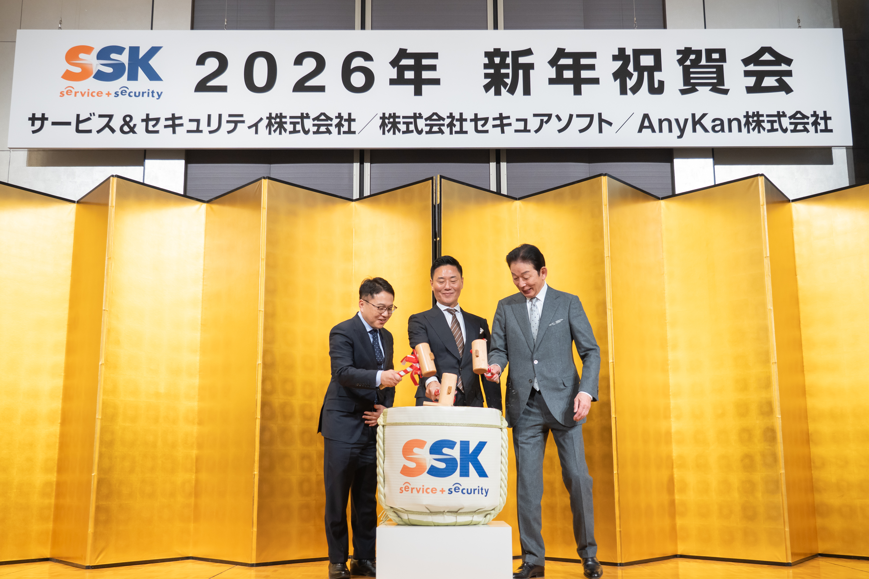 2026年1月4日(日)に行われた関西・東海地区の新年祝賀式に続き、2026年1月10日(土)にザ・キャピトルホテル東急にて、AnyKan株式会社、株式会社セキュアソフト、サービス&セキュリティ株式会社(以下、SSK)のSSグループ3社合同による新年祝賀式及び祝賀パーティーが開催されました。